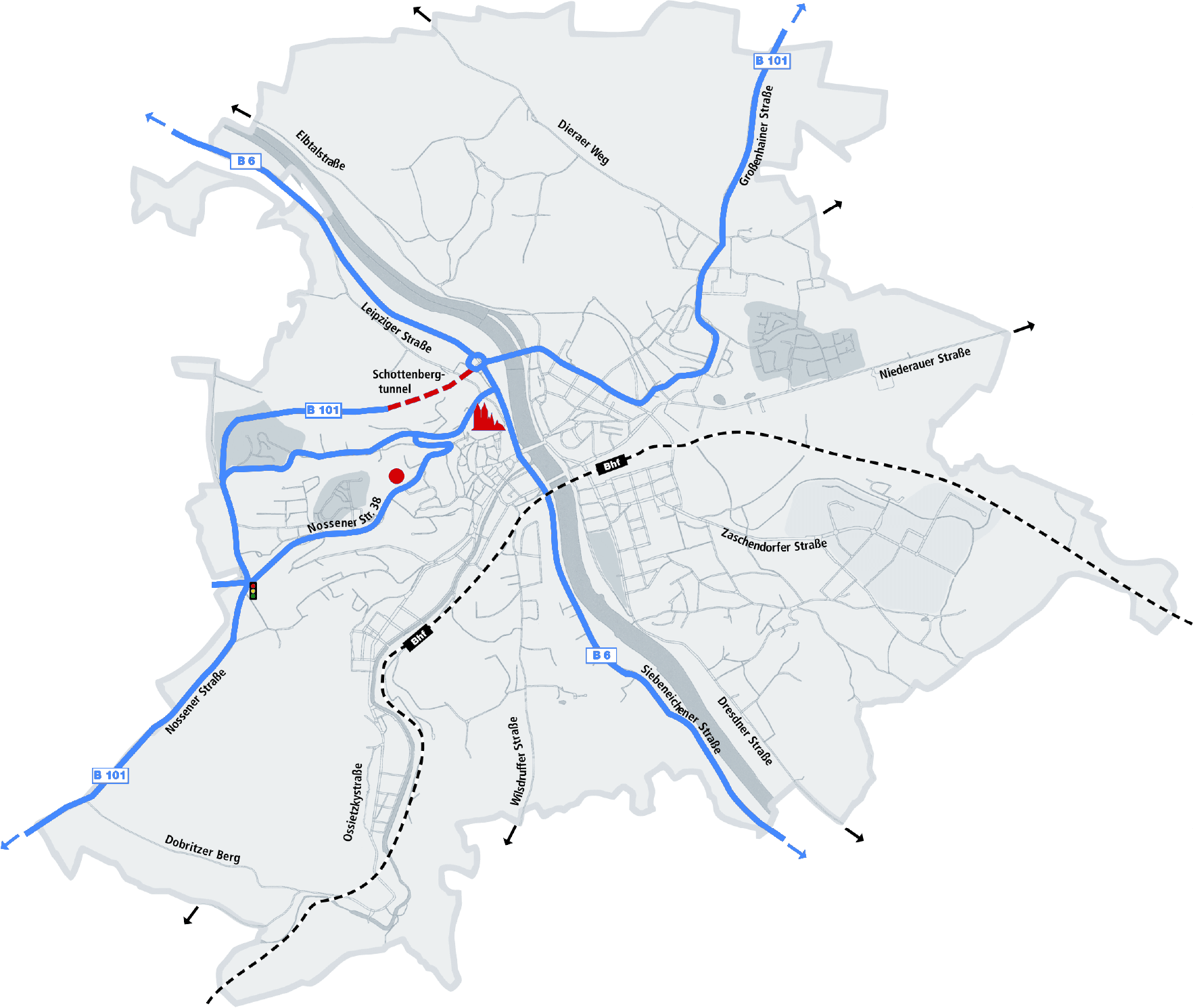 In Meißen nicht durch den Tunnel fahren, Umgehungsstraße!