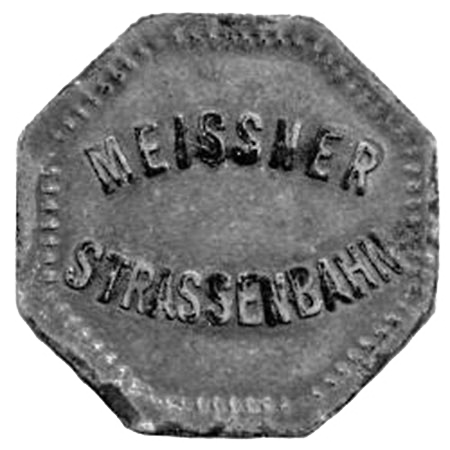Durch die Straßen und Gassen der Porzellanstadt Meißen fuhr ab 1899 eine Personen- und später auch eine Güterstraßenbahn. Bezahlt wurde die Fahrt beim Kondukteur oder Schaffner mit Münzgeld. In den Geschäften der Stadt gab es aber auch spezielle Straßenbahn-Metallmarken, welche man kaufen konnte und die für die Fahrt berechtigten. Kurzfristig wurde mit Porzellanmünzen bezahlt.