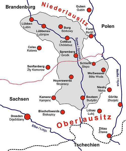 Manch einem wundert es schon, wenn er plötzlich in Deutschland zweisprachigen Orts- und Straßenschildern begegnet. Auch an den verschiedensten Geschäften kann man dann neben „Backwaren“ noch „pječwo“, oder „Obst und Gemüse“ und daneben „Sad a zelenina“ lesen. Was viele mit Staunen bemerken, dass ist für die Menschen in der Nieder- und Oberlausitz schon lange Alltag. Hier im Südosten von Deutschland im Land Brandenburg und dem Freistaat Sachsen, ist seit Jahrhunderten die Heimat eines westslawischen Volkes, den Sorben, welche in Deutschland als nationale Minderheit anerkannt sind. In der ehemaligen DDR war die sorbische Bevölkerung auch schon als nationale Minderheit anerkannt, dieses hatte man sogar in der Verfassung der DDR, Artikel 40 festgeschrieben. Im Einigungsvertrag wurde die Eigenständigkeit der sorbischen Menschen ebenfalls berücksichtigt. Seit 1842 besitzen die Sorben eine eigene Flagge in den Farben (Blau, Rot, Weiß) und mit dem Lied „Rjana Łužica“ („Schöne Lausitz“), eine eigene Hymne.